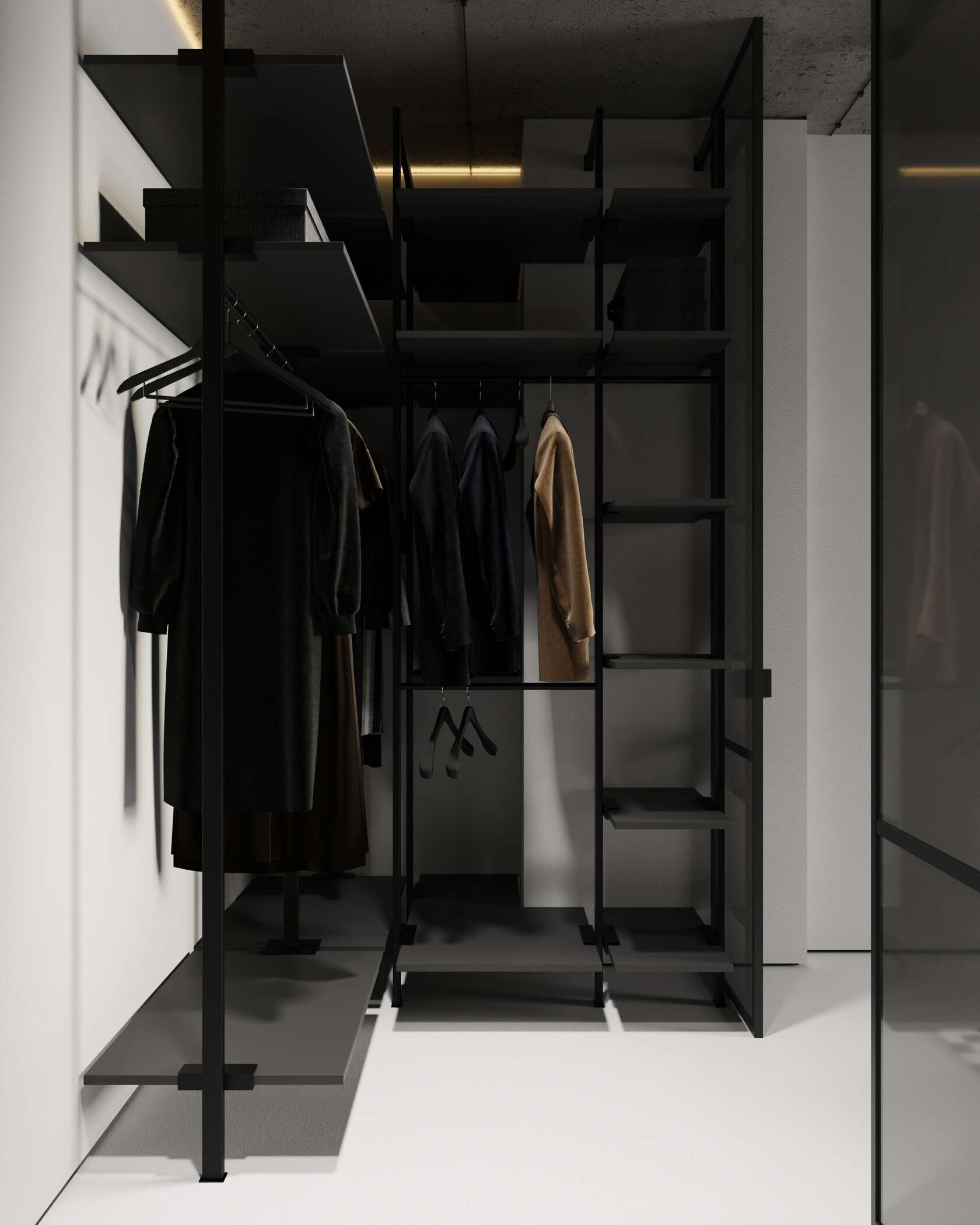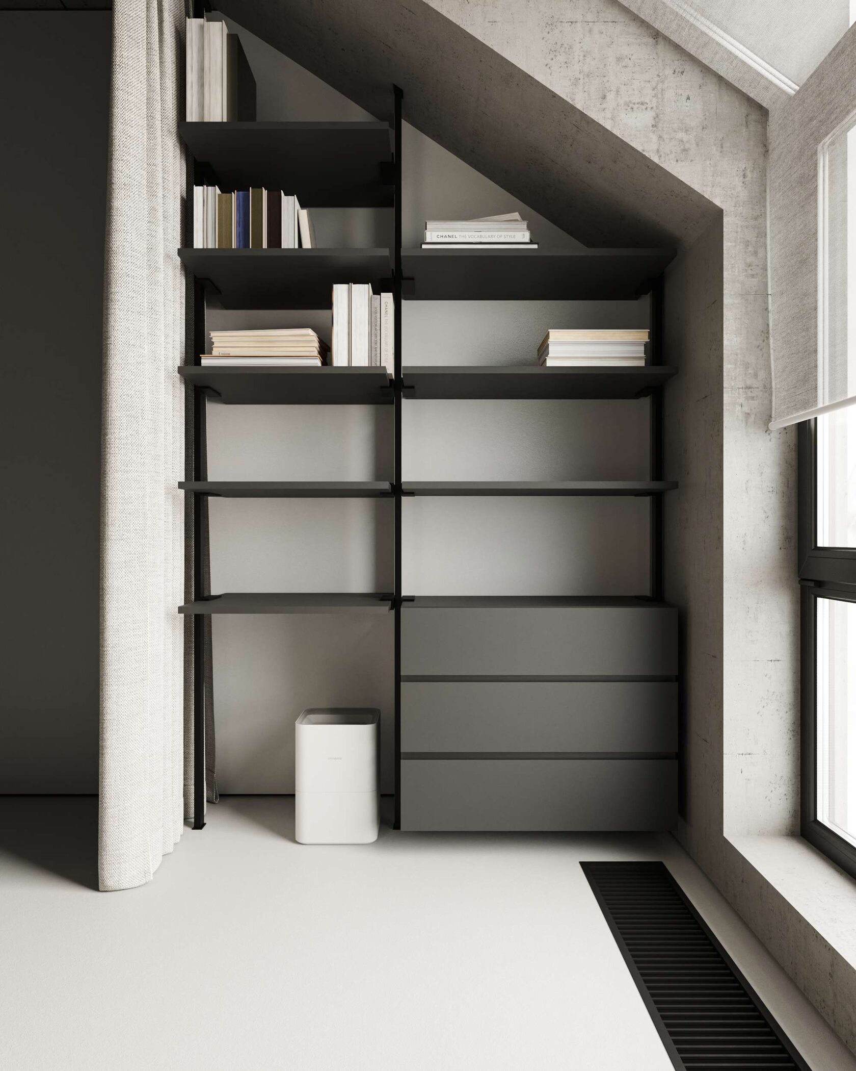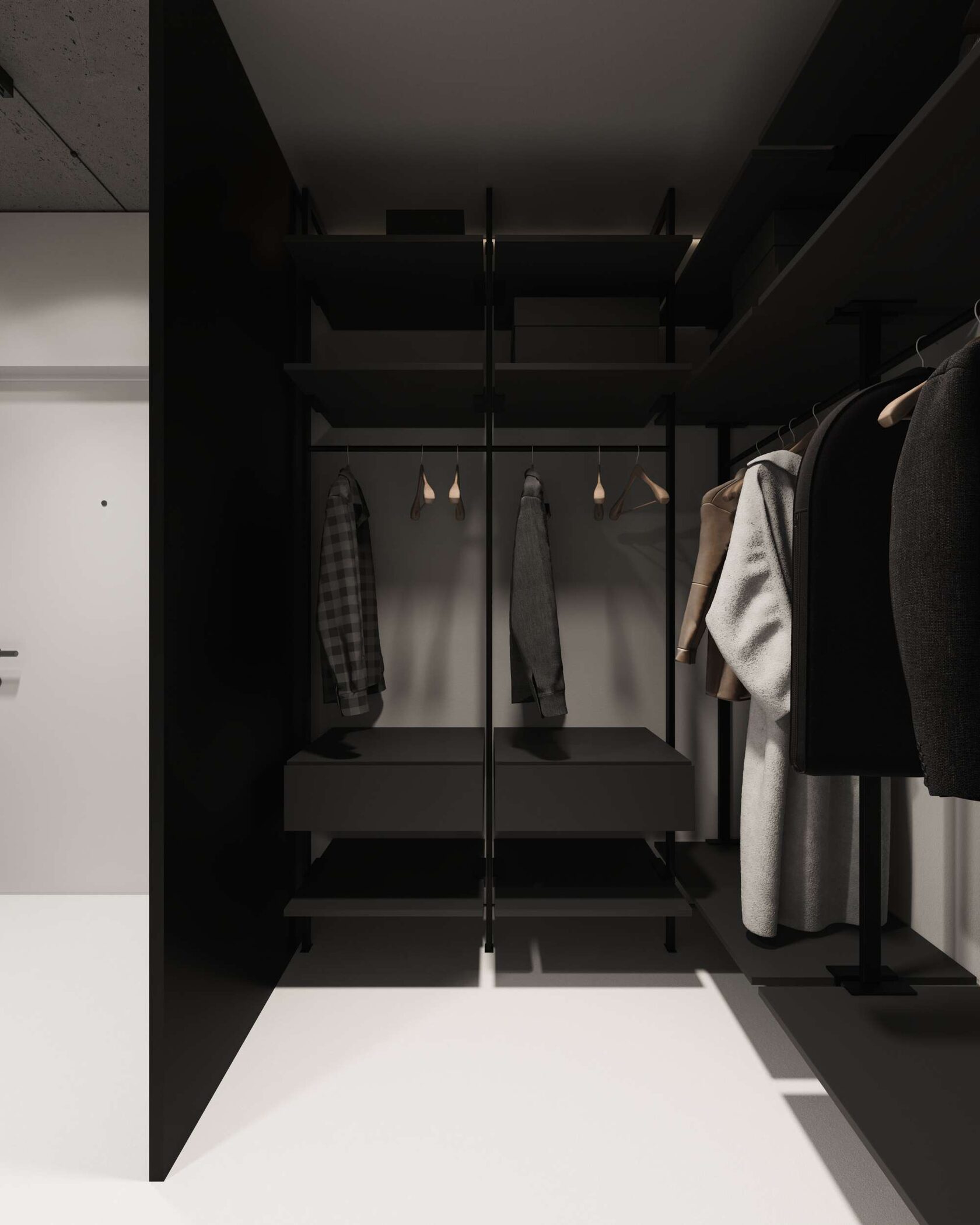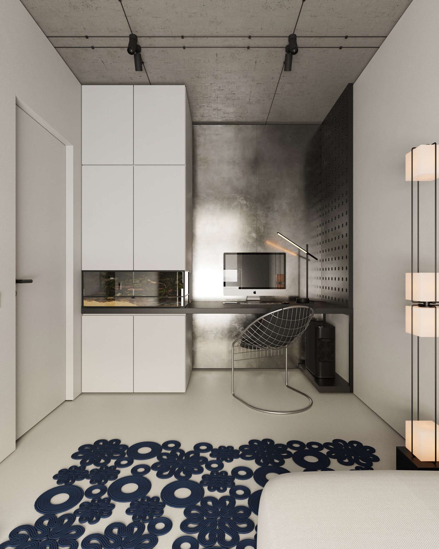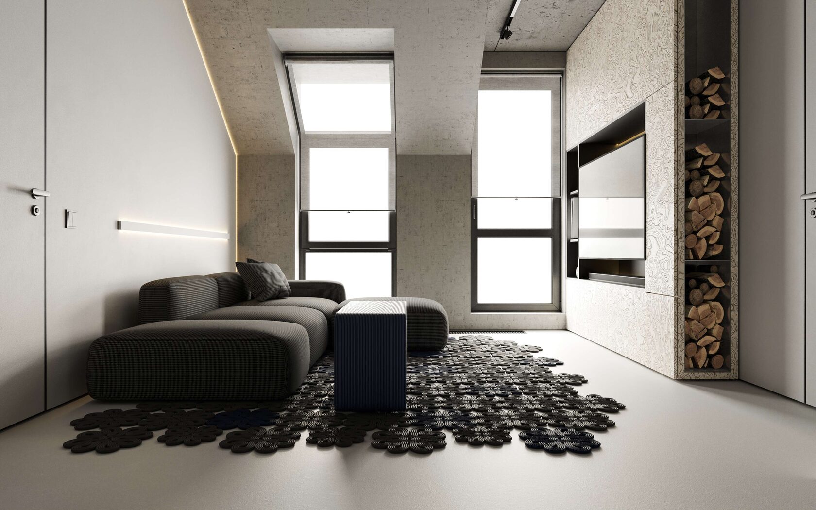 стены, микроцемент, бетон и скрытые двери со-