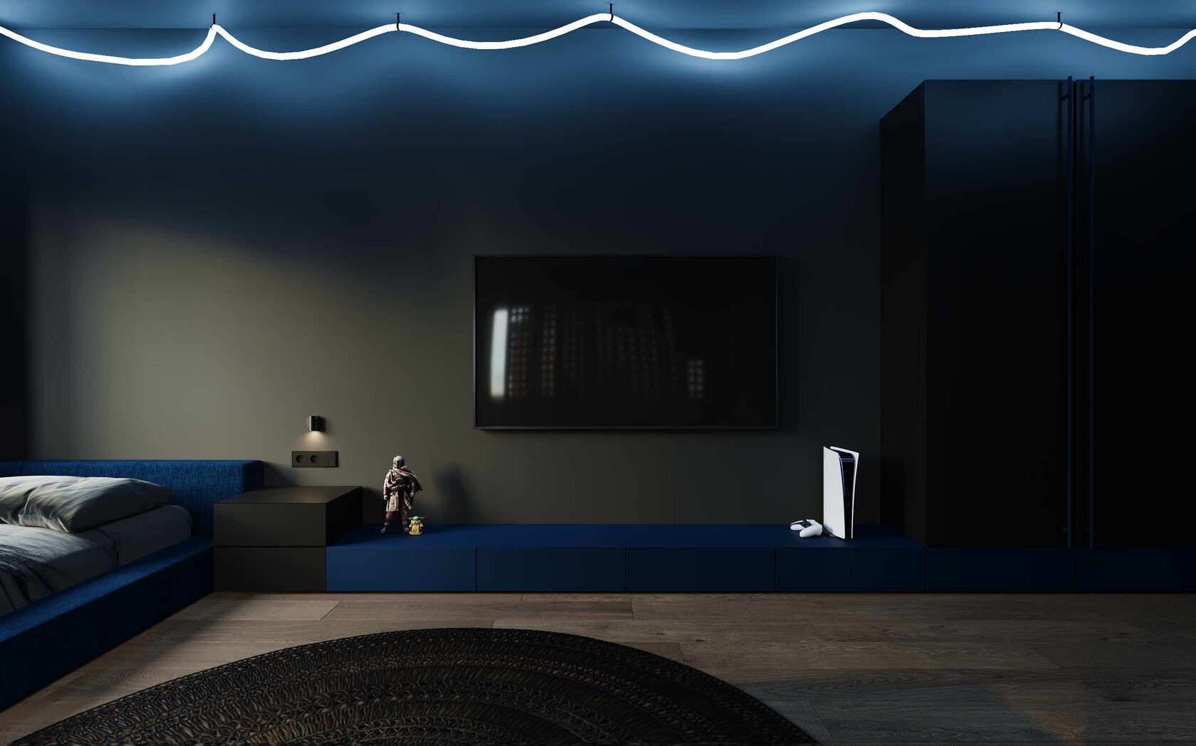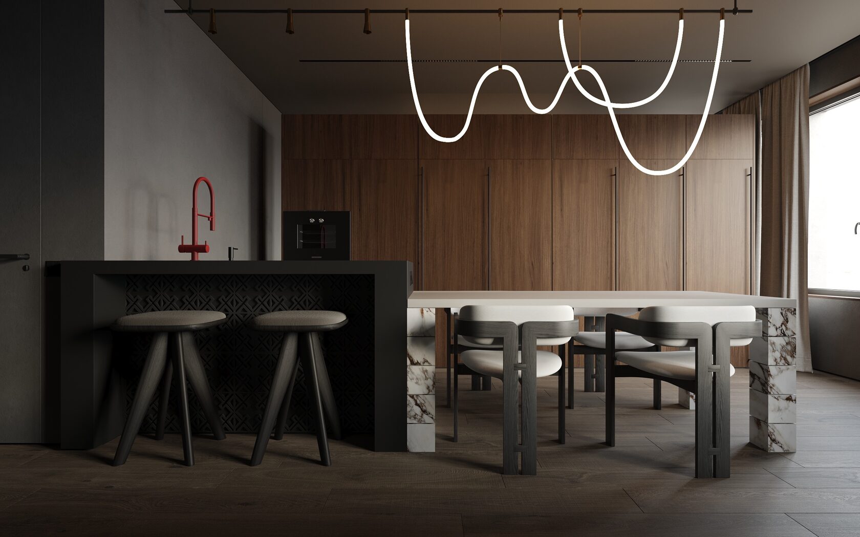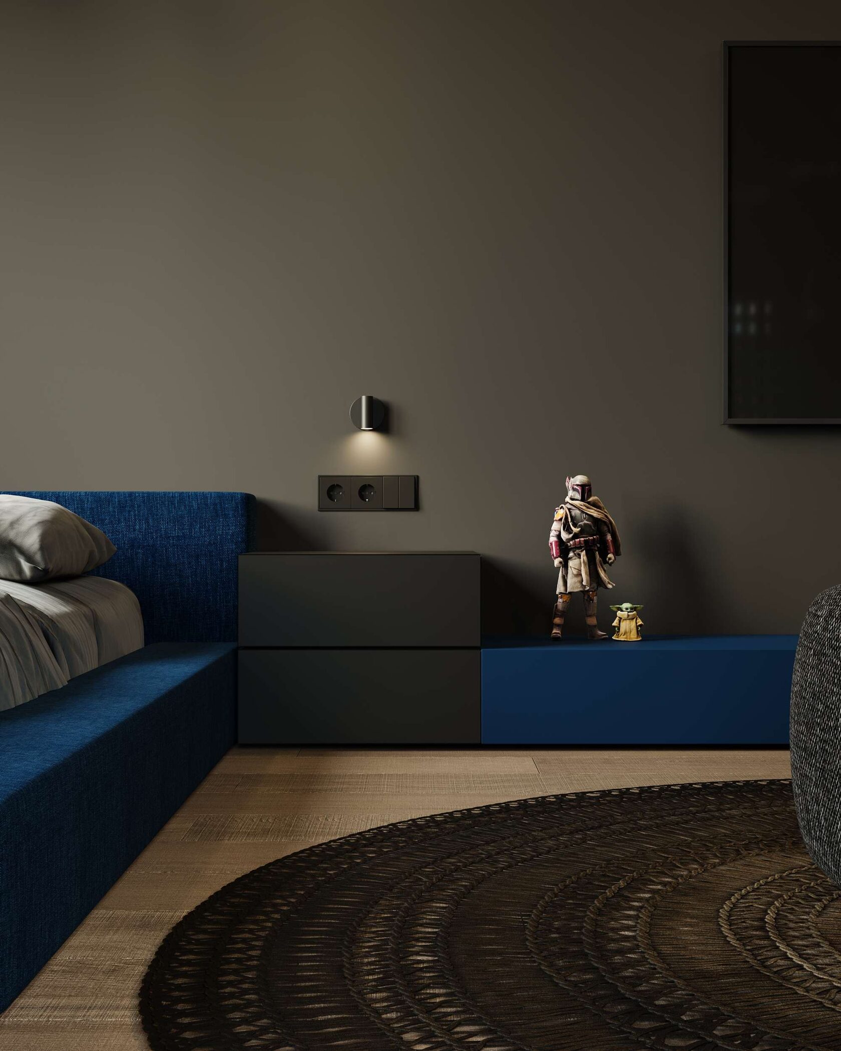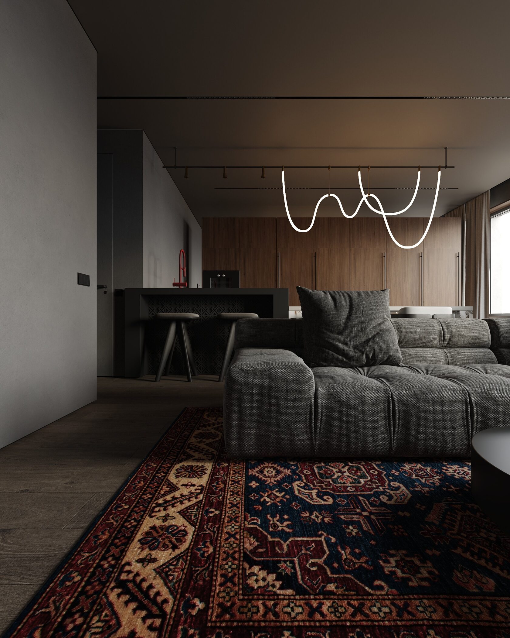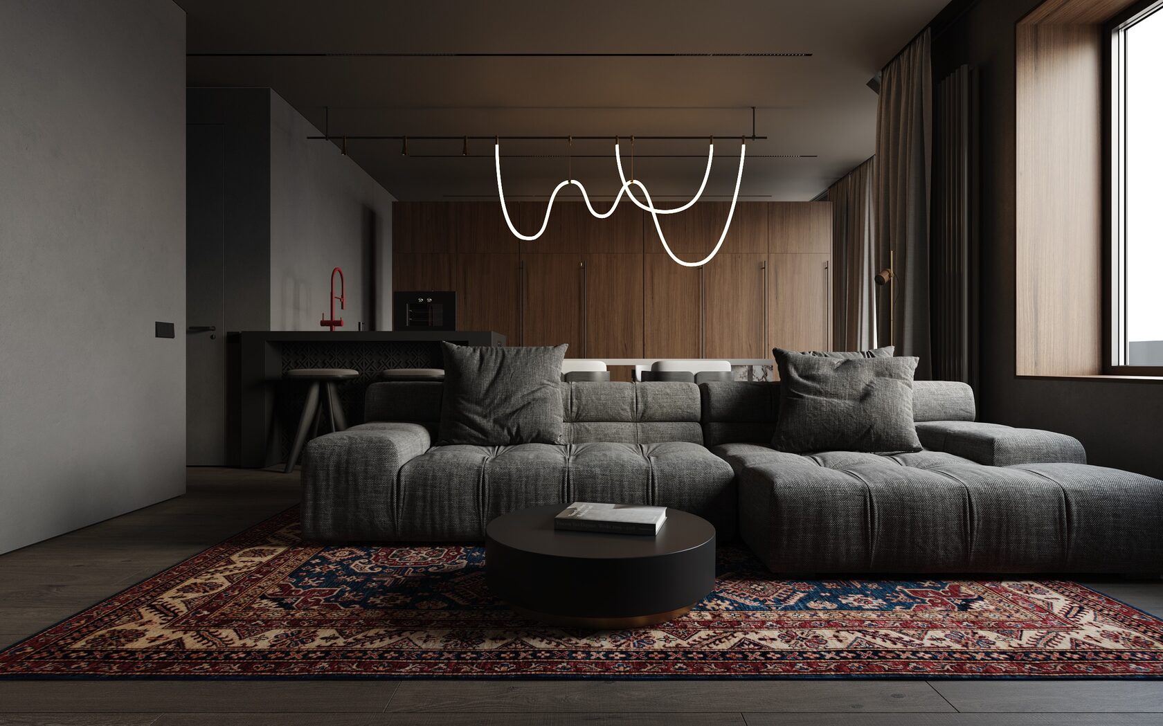 в темных тонах, с использованием